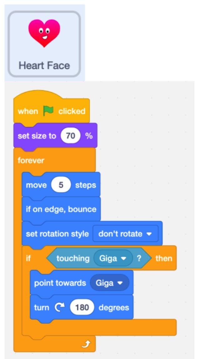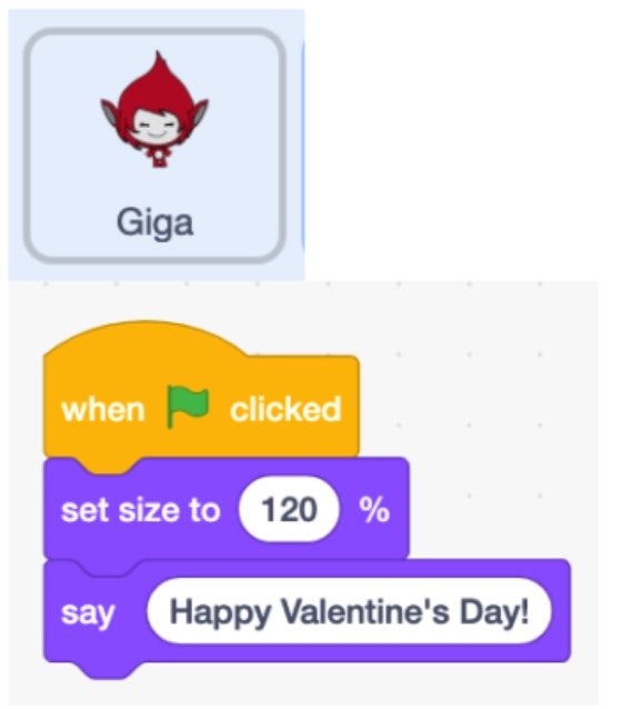 10. Add extra Valentine’s sprites to your stage to make the card even more interactive. We chose ‘Giga’ and ‘Heart Face’, but you can choose whichever you like.